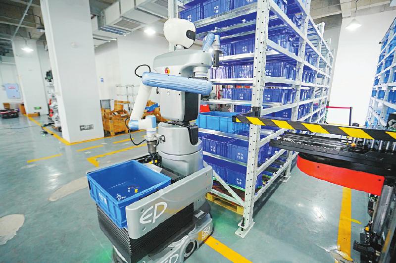 摆满货架的仓储库房里,一台具身机器人正在对零件进行拣选、配送。针对不同形态的零件,它能自主更换、移动机械臂末端执行器,整套动作娴熟流畅……这是近日记者在成都睿芯行科技有限公司(下称睿芯行)测试中心见到的场景。