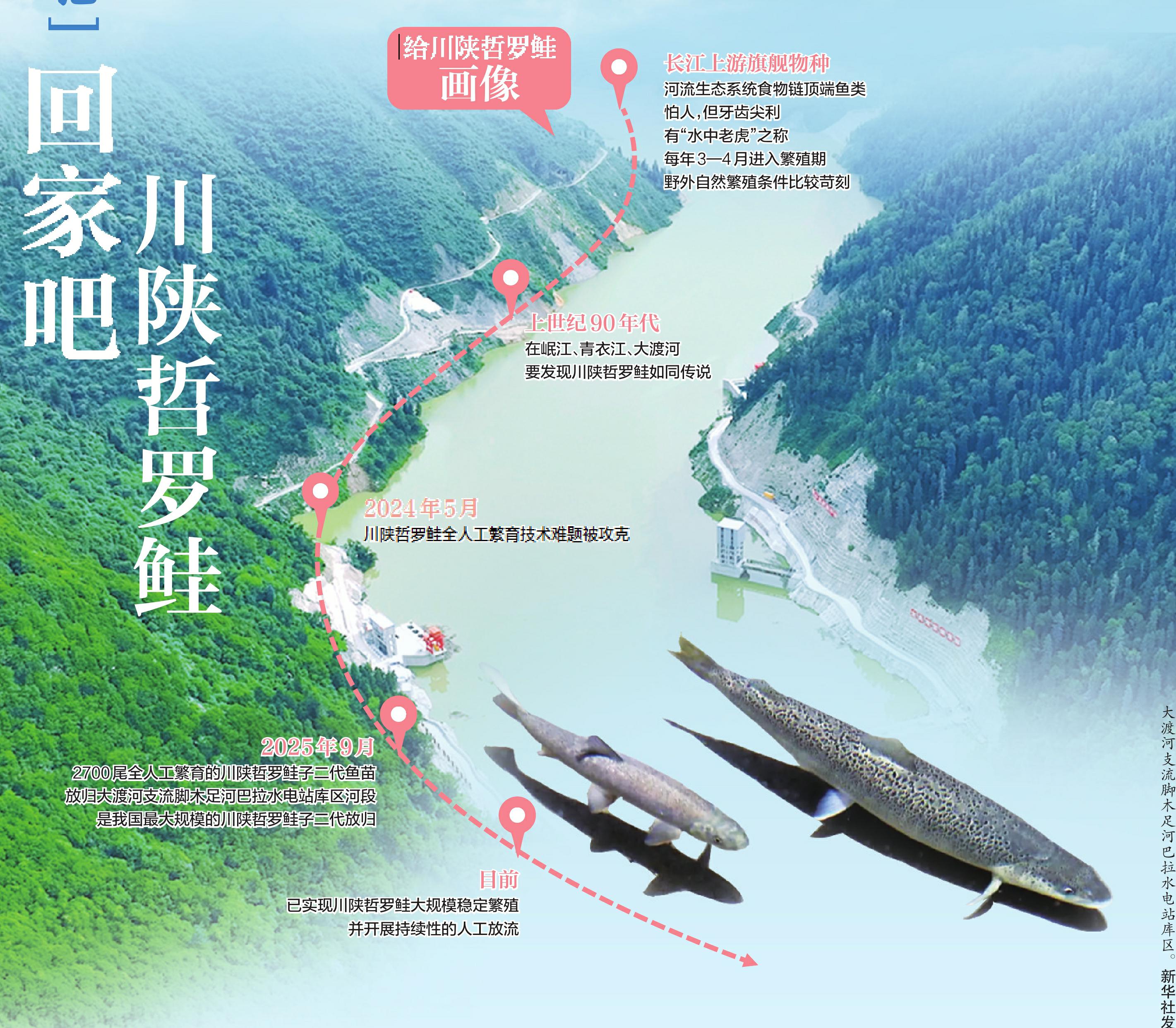 “这个培育池看似简单,其实相当有讲究。”杨焕超说,池内需模拟自然河段水温变化、营造水流环境,还需要调整培育密度、扩大培育水体和投喂多元化饵料等人工措施……一次次尝试后,2024年5月,省农科院水产研究所和中国水产科学研究院黑龙江水产研究所联合组成的科研团队,攻克了川陕哲罗鲑的全人工繁育技术难题,实现了从0到1的突破。