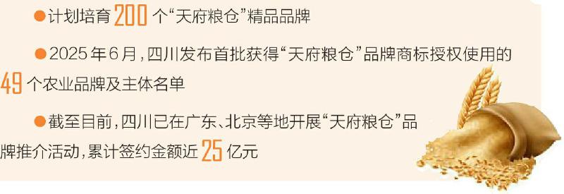 截至目前,四川已在广东、北京、浙江、上海等地开展“天府粮仓”品牌推介活动,累计签约金额近25亿元。