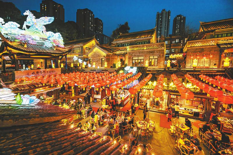 1月15日,成都东门市井2026年“龙马精神·市井民俗灯会节”亮灯,吸引游客前往。 周巧旻 摄(C视觉)