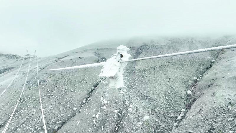 国网四川电力应用除冰机器人“小黄人”对高海拔地区输电线路重冰区段开展高效除冰作业。施少府 摄