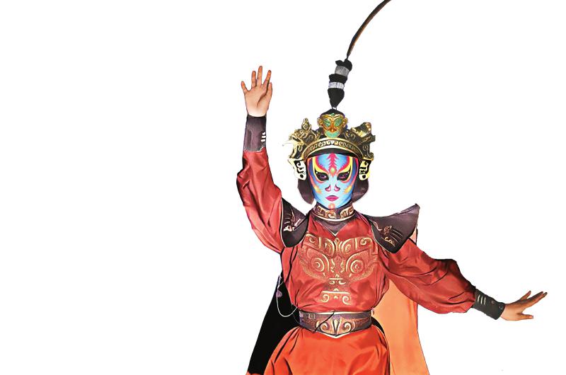 变脸,是川剧绝活的一张名片。舞台上,演员肢体的顿挫与鼓点精准咬合;整齐划一的齐舞中,演员身着青铜纹服饰在音乐中穿梭腾跃;川剧的碎步、兰花指与街舞嘻哈、爵士等舞蹈动作混搭,带来节奏感十足的现场;苍凉高亢的川剧唱腔中,演员身法变换,一张张脸谱切换呈现,更有叠罗汉等高难度动作,引发现场观众的惊呼。