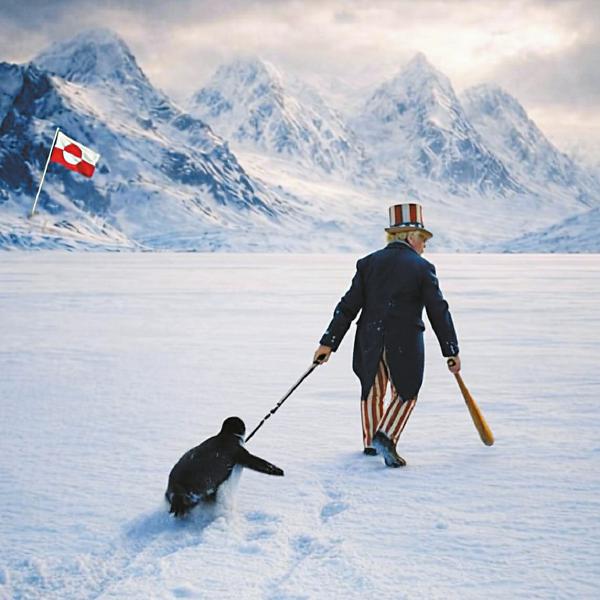 新华社在其X账号上也发布了一张“二次创作”的小动画,显示手持棒球球棒的山姆大叔用绳索拖拽不愿前行的企鹅,并配文“即使格陵兰岛上有企鹅,情况也会是这样。”视频被今日俄罗斯电视台X账号转发。