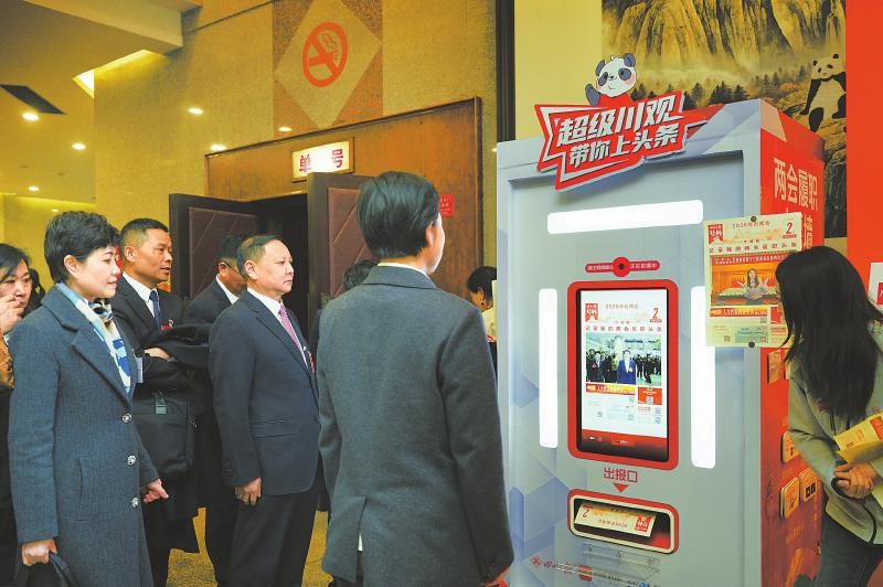 “3、2、1!”随着倒计时结束,在这台醒目的“川观红”互动照相打印机前,委员的履职身影被定格在会场中央。依托AI技术合成和美化处理,一张专属的“两会履职头条”珍藏版“号外纪念报”新鲜出炉。