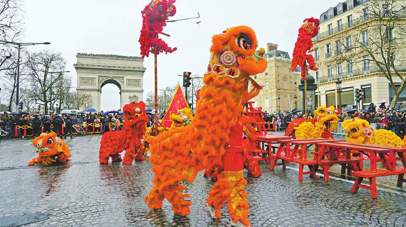 “欢乐春节满巴黎·龙狮贺岁舞香街”春节巡游活动2月1日在巴黎香榭丽舍大街举行,庆祝即将到来的农历春节。这是该活动第四次亮相香榭丽舍大街,由机器人引领的春节巡游表演方阵和紧随其后的舞龙舞狮、民族舞等传统表演,吸引了大街两侧的巴黎市民和游客驻足观看。