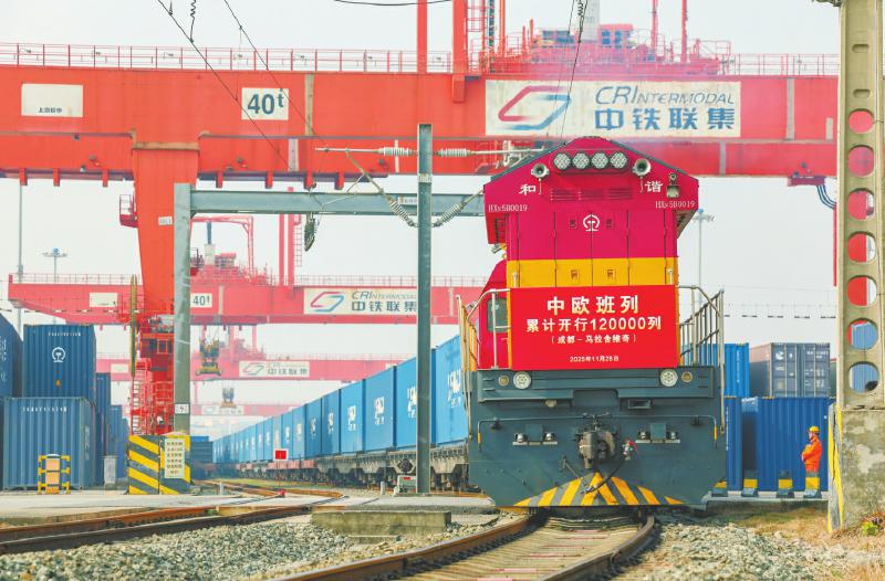 “钢铁驼队”驰骋不息。2025年11月28日,中欧班列第12万列从成都国际铁路港始发,成为中欧班列高质量发展的数字里程碑,跑出青白江、成都乃至四川对外开放“加速度”。