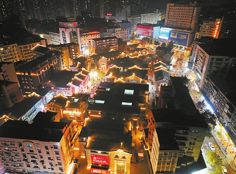 1月24日晚,夜幕降临,华灯初上,焕然一新的内江“四方块”文旅商业街及箭道街人声鼎沸,迎来了活力时刻。霓虹闪烁下,既有宾客盈门的老字号店铺,也有新潮的文创市集、网红餐饮。