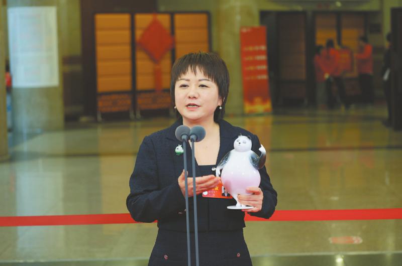 走上委员通道,张鸶鸶专门带上了一个特别的大熊猫玩偶“粉嘟嘟”。“粉嘟嘟”诞生于成都大学自研的大熊猫艺术设计大模型,已多次亮相国内外授权展及相关文化交流活动。近年来,源自四川的三星堆、大熊猫、哪吒等一批辨识度极高的文化IP家喻户晓,在世界范围内“破圈”。