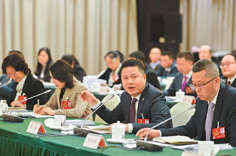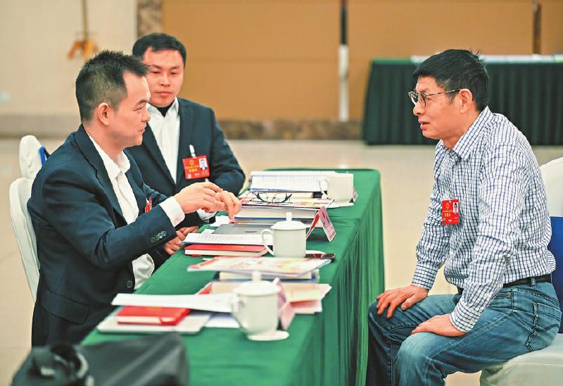 小组会间隙,代表们热议政府工作报告,围绕各自关注的领域进行交流。