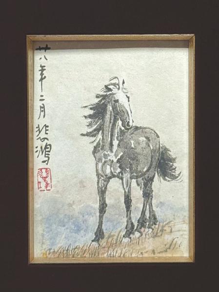 在中国现当代艺术史上,徐悲鸿笔下的“马”早已超越其画作本身,成为寓意昂扬奋进的文化符号。2月10日,“天马行川——马年徐悲鸿艺术特展暨徐悲鸿入川90年悲鸿学派纪念大展”在四川报业博物馆开幕。现场展出的这幅《代马望北》创作于1939年徐悲鸿寓居新加坡时期,因抗战时期绘画材料短缺,徐悲鸿极其珍视一寸一毫材料,大幅作品剩余的宣纸、报纸等均用于创作,构成了徐悲鸿一生中难得的小品作品集中创作时期。此幅立马虽袖珍,却笔精墨妙,马的结构、站姿、形态、结构及笔墨情韵纤毫毕现,审美高远。 (余如波)