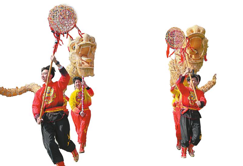 “编扎一条这样的龙需要多长时间?”“光龙头就得三个月,全部编完得大半年。”陈丽燕简单的回答中透露出草龙编织的不易。从选材、制材到做骨架、上稻草,再到连接、上龙筋、点睛……一条草龙的成型需采用编、织、镶、绕、缠等十多种工艺。