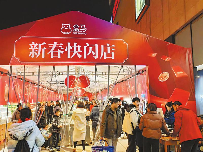 “年货消费突出线上线下协同、文旅融合、首发经济三大特点。”乐山市商务局市运科科长杨祎说,今年春节盒马鲜生首次在乐山开展快闪活动,结合非遗技艺互动、匠人摄影展等活动,让乐山市民在年货采购中获得更新消费体验。