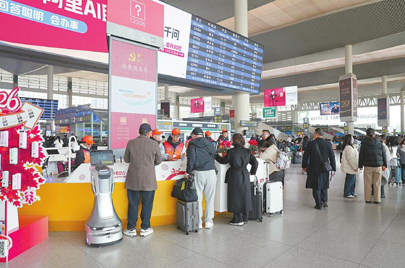 他们中,有像陈露一样带着孩子返乡的妈妈、有拎着年货的父亲、有半年没回家的游子……一趟车的延误,牵动的可能是一串车的晚点,一个个家庭团圆饭的推迟。