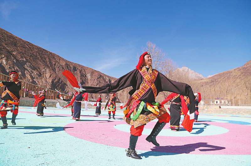 “来!我们再来一遍,两个节目连排,拿足气势,跳出劲头!”双拥大吼一声,男女队员迅速归位、整齐列队。悠扬的伴奏响起,长袖凌空划出弧线,舞步踏响青春节拍。丰收之后,农闲之时,迎春之日,乡亲们欢聚一堂、载歌载舞,这热闹祥和的场景,便是高原上最动人、最美好的时光。