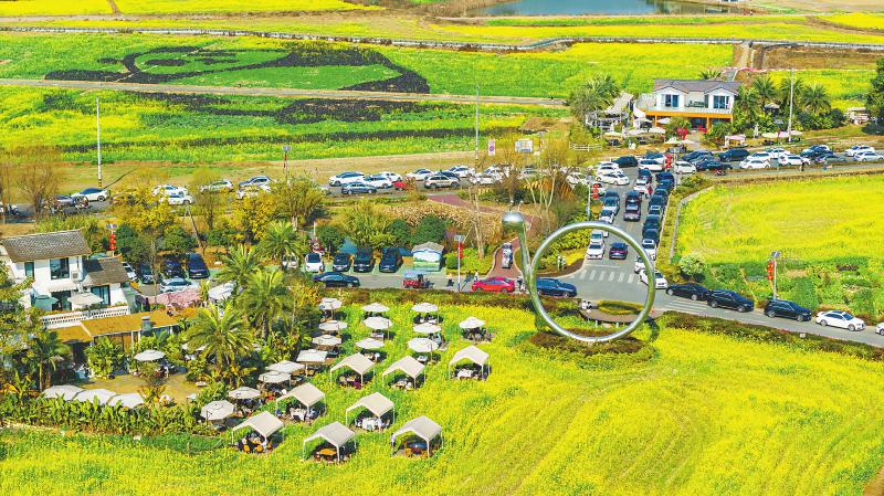 随着气温回暖,成都崇州市白头镇五星村的油菜花也逐渐进入赏花期,2月20日,游客络绎不绝。李旭 摄(C视觉)