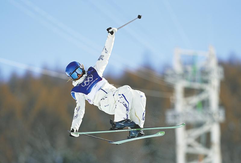 当地时间2月22日,在意大利利维尼奥举行的米兰-科尔蒂纳冬奥会自由式滑雪女子U型场地技巧决赛中,中国选手谷爱凌、李方慧分获冠、亚军。图为2月22日,谷爱凌在第三轮比赛中。 新华社记者 邬惠我 摄(相关报道见03版)