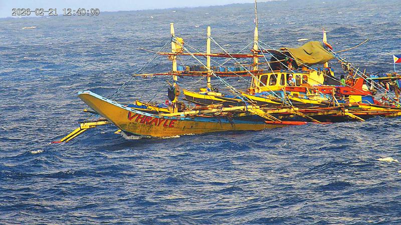 2月21日,菲律宾多艘船只集结侵闯我黄岩岛领海,被我海警万山舰编队依法驱离。这是中国海警鹤宝舰在对冲闯我黄岩岛领海的菲船只进行警示性水炮喷射(视频截图)。新华社发