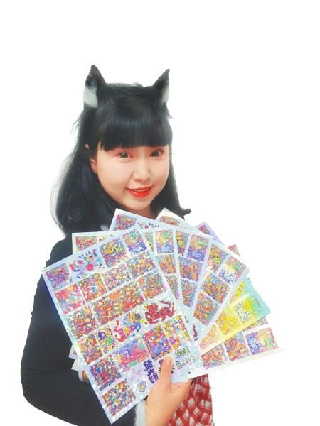 素面镭射、玻璃镭射、星星镭射、大点镭射……当记者第一眼看到孙博秀芳推出的马年年画文创贴纸产品的时候,最引人注目的就是其表面的彩虹反光效果。