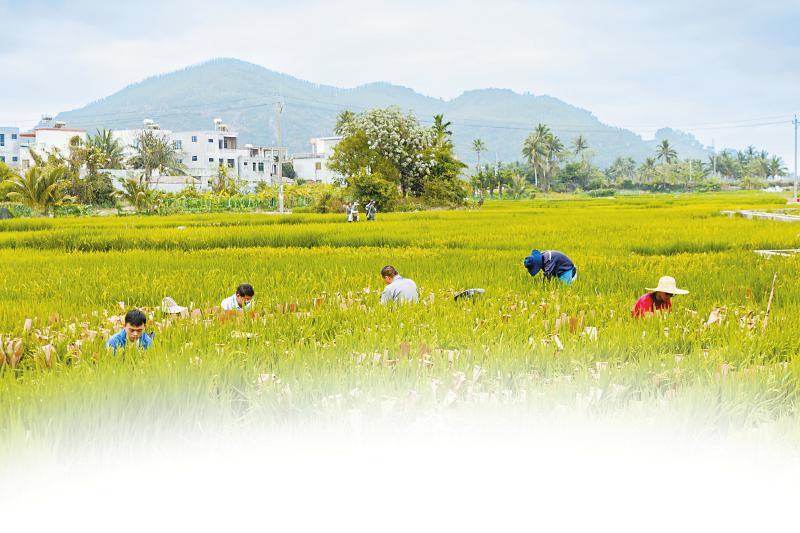 时下水稻南繁育种进入关键期,3月2日,在位于海南省陵水县的四川农业大学南繁科研育种基地内,科研人员忙着进行水稻杂交田间作业。陈先林 摄(C视觉)