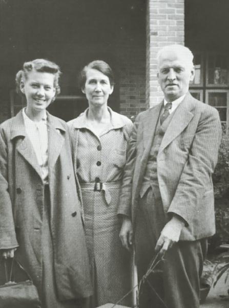 1938年11月3日,饶和美(右)、饶珍芳(中)夫妇在成都四圣祠北街18号寓所前,为即将前往川西考察的女儿伊莎白送行。