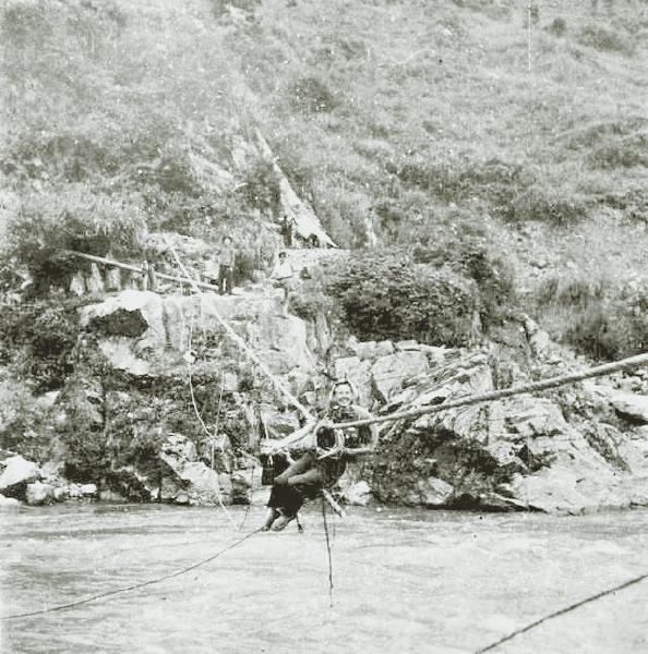 伊莎白过溜索(1939年,饶和美 摄)。