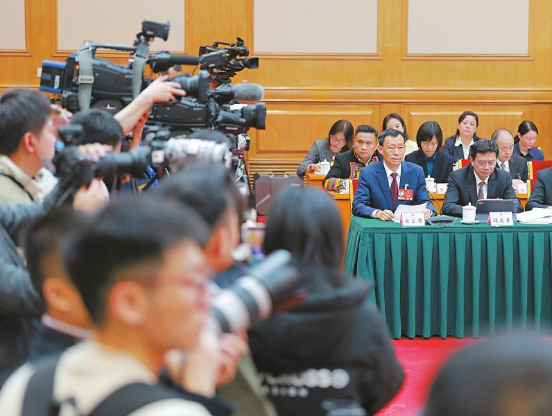 3月6日上午,十四届全国人大四次会议四川代表团举行开放团组活动,媒体区“长枪短炮”、座无虚席,101家境内外媒体的162名记者到会旁听,并在提问环节踊跃举手。