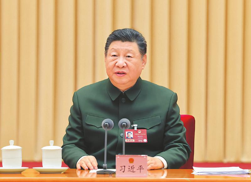 习近平在出席解放军和武警部队代表团全体会议时强调,凝心聚力推动国防和军队现代化行稳致远
