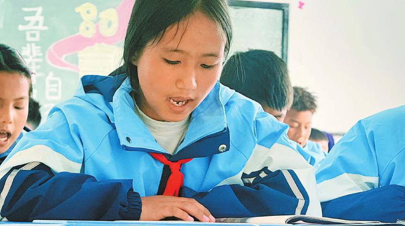 “故人具鸡黍,邀我至田家……”2026年3月2日,新学期开学第一天,记者在越西县新民镇武警爱民小学见到木出尔紫时,她正在朗读古诗《过故人庄》。木出尔紫已上六年级,是班里的副班长,最喜欢的就是语文课。