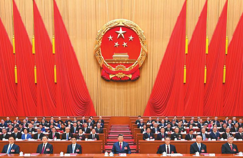 3月12日下午,第十四届全国人民代表大会第四次会议在北京人民大会堂闭幕。党和国家领导人习近平、李强、王沪宁、蔡奇、丁薛祥、李希、韩正等在主席台就座。 新华社记者 谢环驰 摄