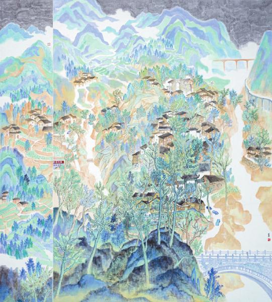 四川大学艺术学院教师陶安萍,长期从事山水画创作、教学与研究。其作品取材广泛,既有富含四川民居特色的村落,也有精致而具浪漫情调的园林雅室,力求表现暗含蜀地人文精神的山水趣味。多年的院校专业学习和美术基础教学,并没有让陶安萍的艺术感悟囿于象牙塔一隅,而是以独到的视角、题材和形式,营造出新颖而情真意切的画面,充满了个人的艺术见解。在评论者看来,陶安萍的创作在调色中灵活地吸纳了对光线的表现,将其巧妙地带入传统重彩的镶嵌塑造中,给人以浪漫又不失亲切之感。同时充分运用色层冷暖叠套,细腻铺排,展示出重彩艺术的魅力。 (余如波)