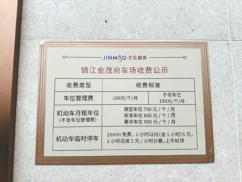 还有不少网友反映,虽然小区停车费一路上涨,但服务却没有跟上。记者在锦江金茂府小区停车场出入口看到,月租车位费分为700元(微型)、800元(标准)、900元(豪华)三档,加上每月100元的车位管理费,每月停车费用已近千元。该小区业主周女士说,不少所谓的标准车位停不下越野车,安全也无法保证。