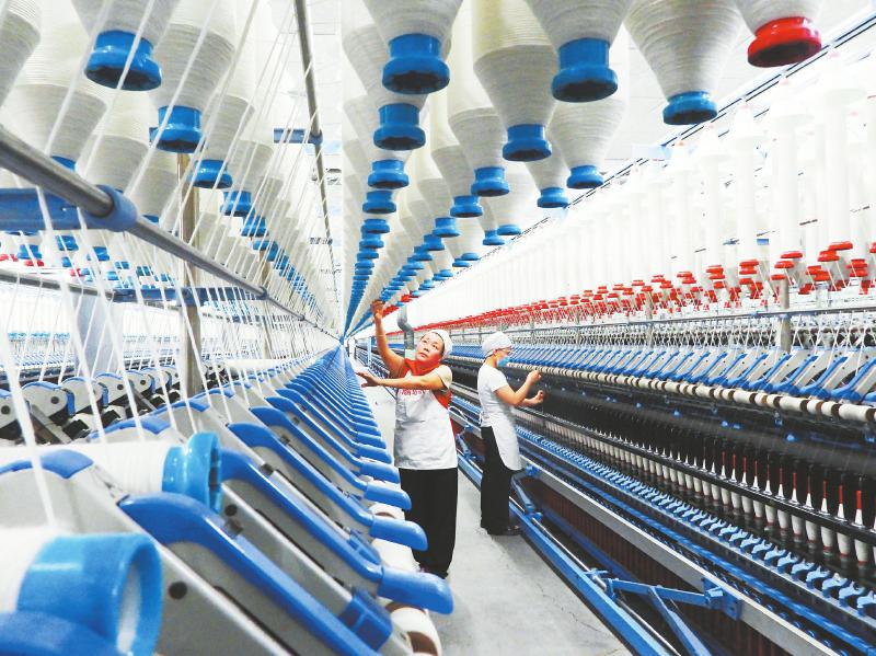 3月16日,在达州高新区南国纺织印染有限公司生产车间,工人在加紧赶制出口欧美国家的棉布订单。眼下,达州市纺织服装企业正积极抢抓有利时机,加紧赶制海内外订单,全力冲刺一季度“开门红”。 邓良奎 摄(C视觉)