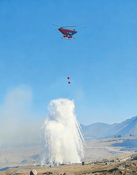 位于凉山州德昌县的四川责航飞机制造有限责任公司生产的无人直升机,近日实现首次批量下线,填补了凉山州高端无人机整机制造产业空白。图为德昌造无人直升机参与防灭火演练时喷洒灭火剂。李思行 四川日报全媒体记者 何勤华