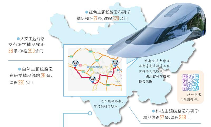 本次推介活动共发布116条精品线路。其中,红色主题线路聚焦长征精神、伟人故里、三线建设等内容,整合全省红色研学教育基地、营地77个,发布研学精品线路27条、课程320余门;人文主题线路聚焦古蜀文明、历史名胜、非遗传承等文化瑰宝,发布研学精品线路36条、课程290余门;自然主题线路依托四川作为长江黄河上游生态屏障的独特优势,整合国家和省级自然教育基地资源72个,发布涵盖大熊猫、生态茶园、户外探索等内容的研学精品线路26条、课程220余门;科技主题线路聚焦国家科技创新基地,整合航空航天、人工智能、生物医药、大国重器等领域,发布研学精品线路27条、课程368门。