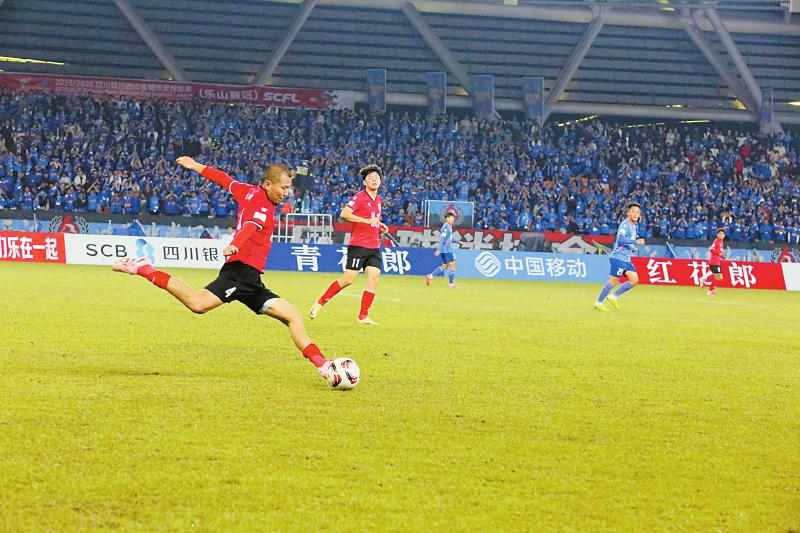 在乐山,乐山味道非常队主场对阵达州川汉子队,上演进球盛宴。开场不到7分钟,乐山味道非常队便利用角球机会破门。上半场结束前,乐山味道非常队点球命中。下半场乐山味道非常队再入3球,最终以5比0锁定胜局。