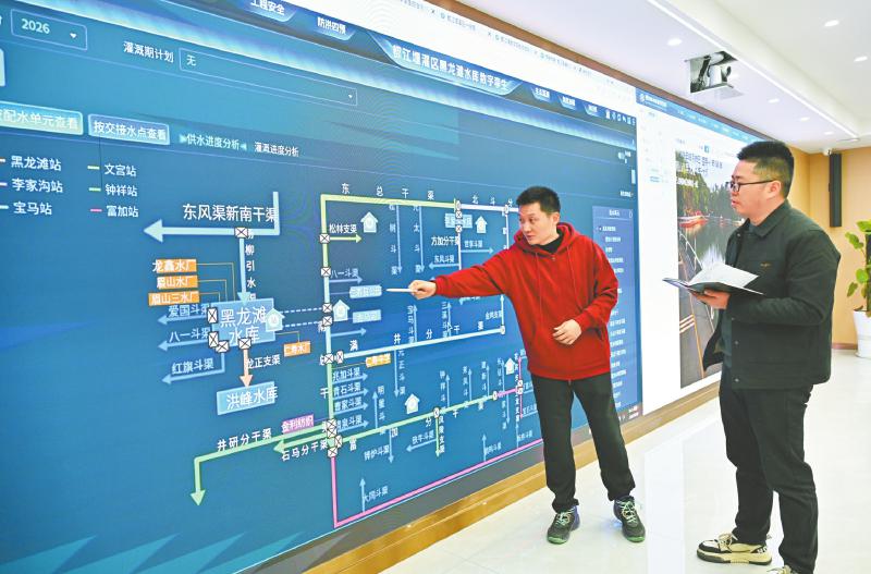 去年,数字孪生黑龙滩水库平台上线,融合物联网、大数据与AI技术,构建了以水库为核心的150平方公里高精度数字底板,为调度工作带来转机。如今,通过来水与需水预测模型,该平台仅需 3分钟即可生成用水计划的精准方案。同时,平台还能对雨量、水位、流量等数据进行自动采集分析,并利用AI视频替代人工对水库全域进行24小时巡查,大幅降低人力成本。“这一平台成为今年春灌的‘得力干将’。”王建康说,该平台通过及时反馈田间地头的实际用水情况,实现水资源精准高效配置。