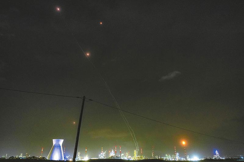 这是3月19日在以色列北部城市海法拍摄的以军防空拦截弹。 新华社/法新