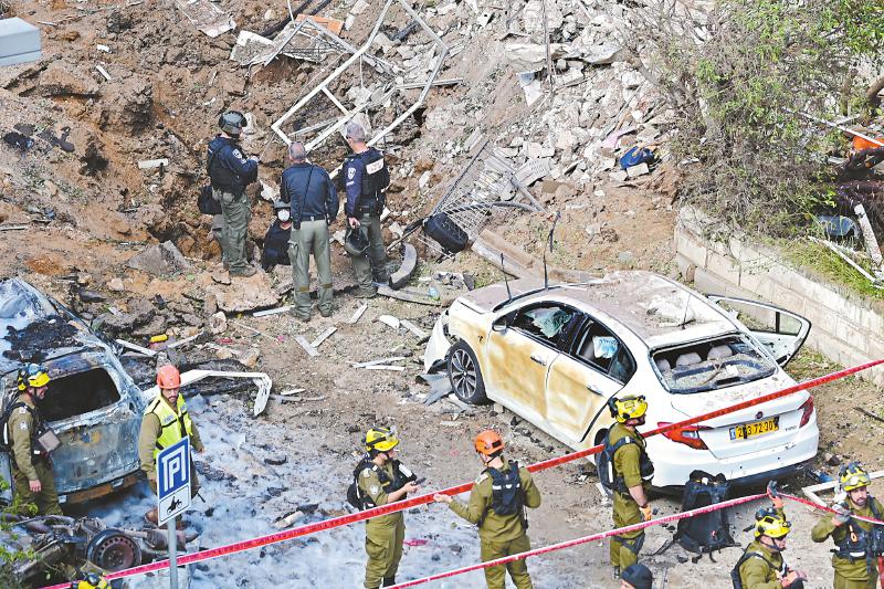 3月24日,伊朗向以色列发动新一轮导弹袭击。图为以色列中部城市特拉维夫,应急人员在导弹袭击现场处置。 新华社发(托默·诺伊贝格 摄/基尼图片社)