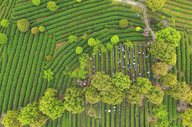 3月28日,宜宾市珙县玉和苗族乡青龙村的团山包茶园,游客参加采茶大赛。 兰锋 摄(C视觉)