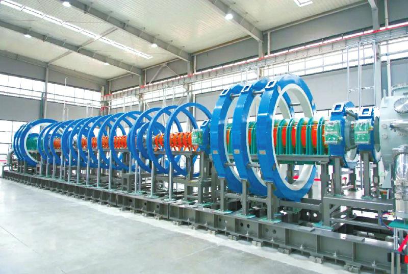 若将走托卡马克路线的大科学装置比作“大太阳”,HHMAX-901便是一颗“小太阳”。在厂房里,记者看到了这个“小而巧”的装置——造型颠覆传统球状,呈直线型管状,主体长约20米,蓝色与黄色的环状结构排列其间,宛如一支大型圆珠笔弹簧。