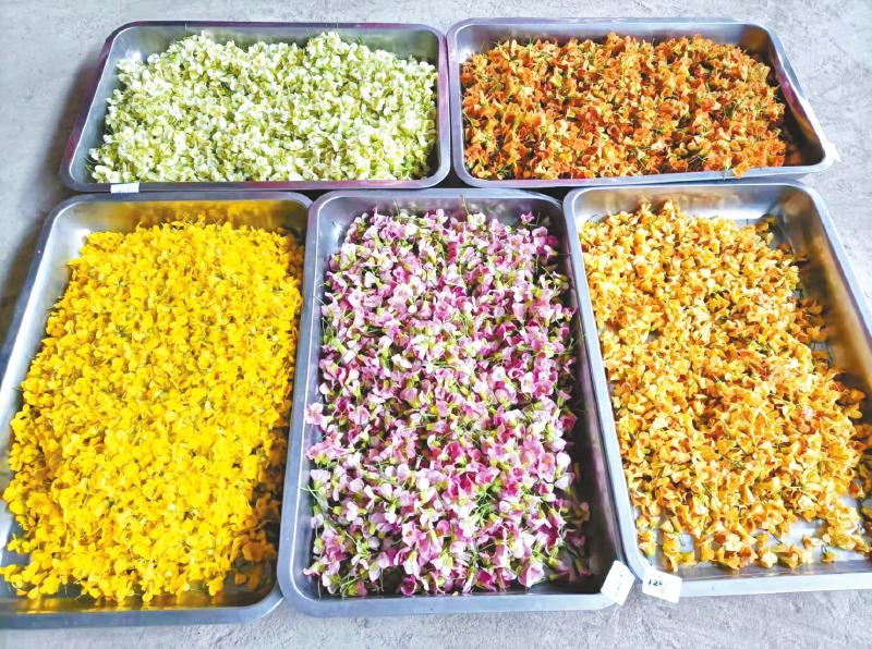 “通过实验,我们发现彩色油菜花瓣富含花青素、酚类含量和抗氧化活性高,开发潜力巨大,计划研发一款油菜花茶,希望提升油菜花附加值。”四川油菜创新团队多功能油菜材料创制与应用岗位专家、四川省农业科学院作物研究所研究员崔成向记者分享了最新研究成果。未来,团队还计划以油菜花提取物为原料,开发面膜、护肤霜等产品。