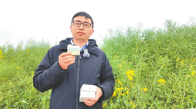 以四川首个油菜抗根种病胞质不育三系杂交新品种“川油101”为例,李浩杰团队拟利用分子标记辅助育种等技术,基于已构建的分子模块和分子育种体系,将油菜抗根肿病关键基因聚合到育种亲本中。通过配制多代杂交组合及多年多点的生产试验,最终筛选出综合性状优良的抗根肿病油菜新品种。2022年,实现了抗病与高含油量等多个优良性状聚合的“川油101”终于育成。李浩杰介绍,团队还创新构建了四川首张油菜分子育种液相芯片,挖掘了根肿病抗性、宜机收等新基因,为后续抗病育种奠定了基础。