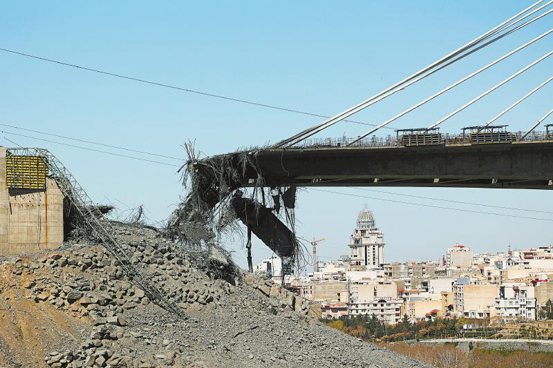 据伊朗媒体报道,获称中东最高桥梁、伊朗标志性工程杰作的卡拉季市贝伊克公路桥2日遭美国和以色列两次空袭受损。空袭造成8名平民死亡,另有 95 人受伤。图为4月3日拍摄的遭袭受损的伊朗卡拉季市贝伊克公路桥。 新华社/路透