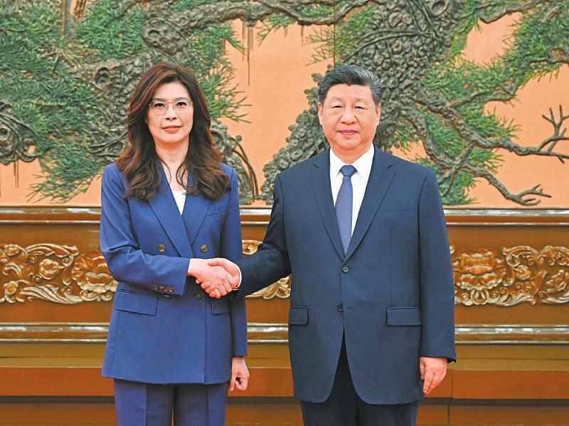 4月10日上午,中共中央总书记习近平在北京会见郑丽文主席率领的中国国民党访问团。新华社记者 谢环驰 摄