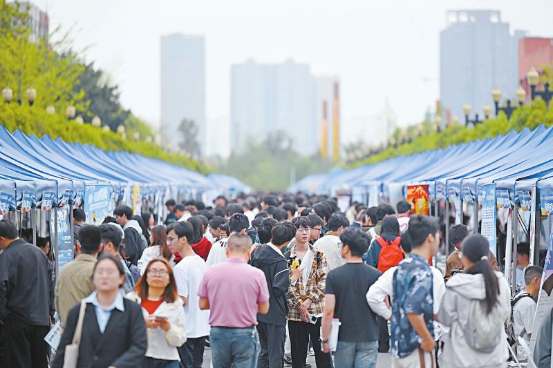 4月10日,“春风送岗职引未来”四川省2026届高校毕业生春季大型招聘会成都大学分会场人气高涨,毕业生们在寻找心仪岗位。本次活动是全省春季就业攻坚行动的重要一环,汇聚近360家省内外优质企业。 四川日报全媒体记者 杨树 摄