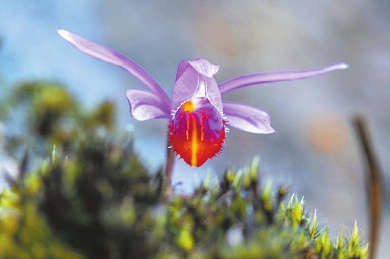独蒜兰隶属于兰科,是多年生草本附生植物,因其储存营养的假鳞茎形如蒜头且花朵多单生而得名,主要生长在常绿阔叶林下或灌木林缘腐殖质丰富的土壤中,主要分布于四川、陕西南部、广东北部、广西北部、贵州、西藏东南部等地。此次在四川老君山国家级自然保护区发现独蒜兰种群,为深入研究独蒜兰的生态习性、种群动态及分布规律提供了珍贵样本。