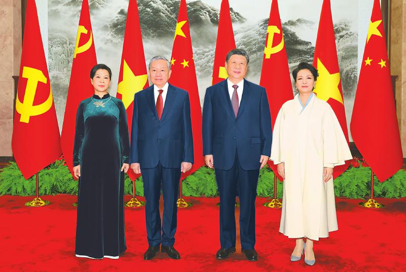 双方要同心协力,携手同行现代化道路。要加快发展战略对接,优先推进基础设施互联互通。要加强人工智能、半导体、物联网等新兴领域合作。中方欢迎更多越南优质产品进入中国市场。双方要继续加强旅游、文化、媒体、教育、卫生、体育等友好交流合作,促进两国人民相知相亲。我愿同你一道宣布启动2026-2027年“中越旅游合作年”。