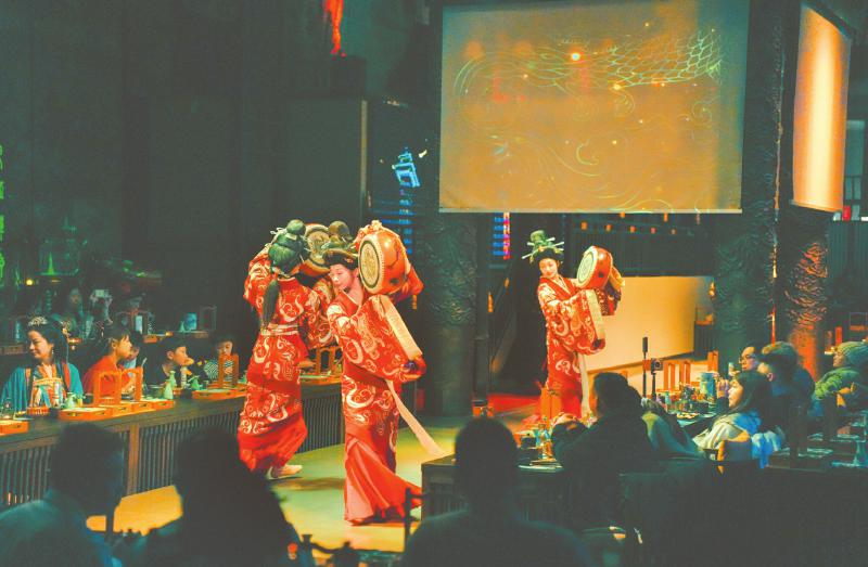 以成都为例,沉浸式国风餐秀别具一格。“蜀宴赋”与“红鼎艳”把餐厅变成了文化剧场。在这里,可以边品尝美食,边感受华夏礼乐文化与蜀地千年历史。吃一顿饭,不再只是满足口腹之欲,更是深度体验文化,完成从味觉享受向文化认同的转变。