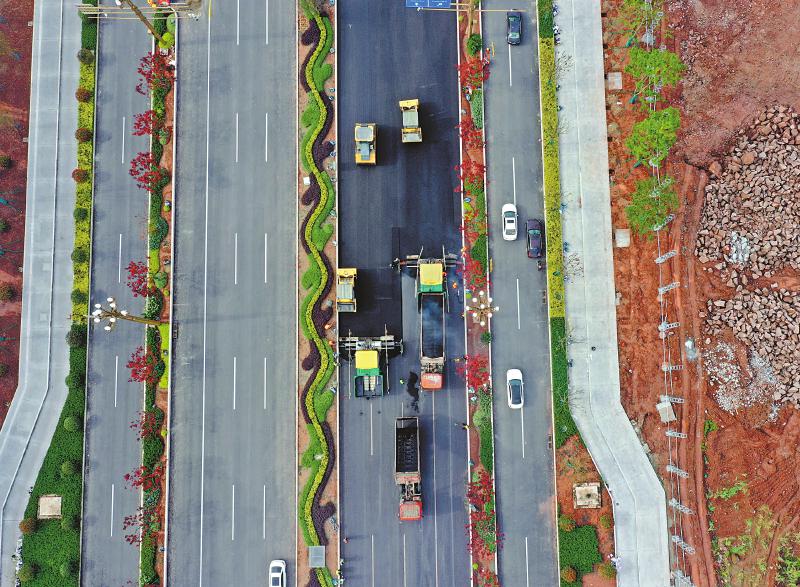 4月7日,施工中的广安市賨城大道。賨城大道是连接广安市主城区与西渝高铁广安东站的核心交通干道,建成后将实现主城区至高铁站10分钟直达。 廖小兵 摄(C视觉)