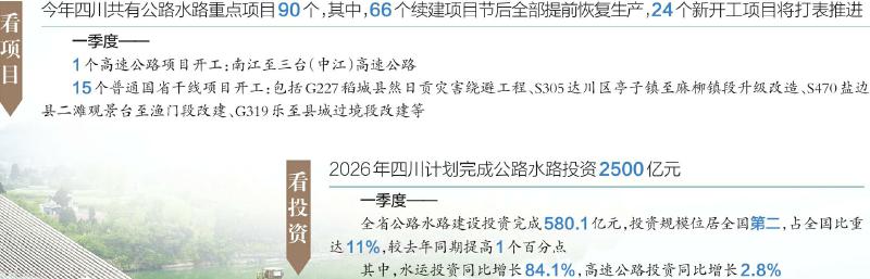 放眼全年,四川交通“施工图”已经铺开。今年,全省预计完成公路水路投资2500亿元。省交通运输厅相关负责人表示,下一步,全省交通运输系统将持续锚定目标、加压奋进,全力扩大有效投资,高质量完成全年目标任务,为“十五五”开局之年起好步、开好局。